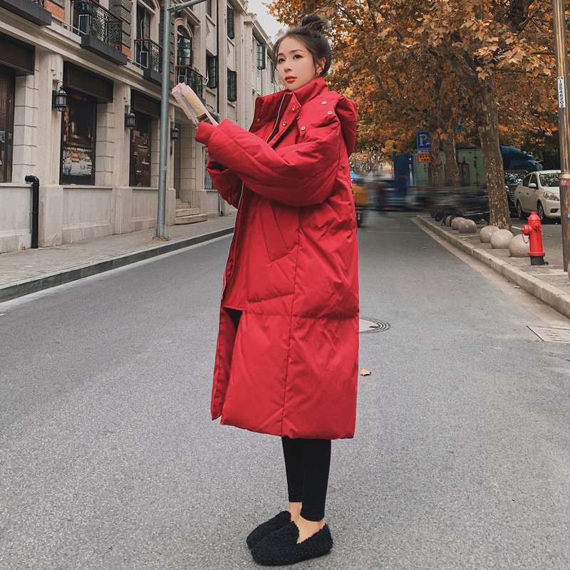 Red chic cotton clothing 2020 new women's small-haired yangpai age-reducing plus thick down cotton wool medium-length version of the jacket tide