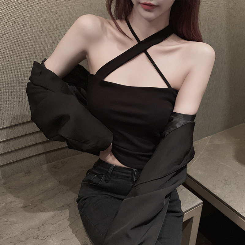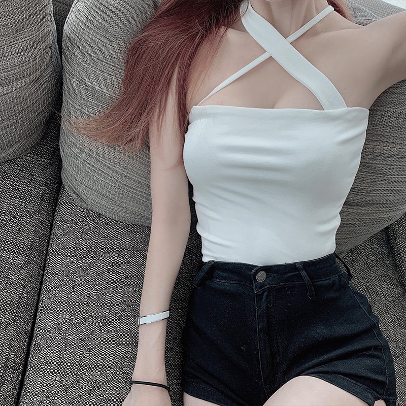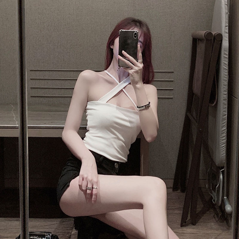 Camisole women's inner base design sense Niche wear white sexy mind beauty back cross halter neck top
