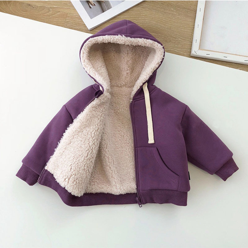 2022 - Foreign trade children's clothing to thicken coat boys and girls warm up the tops baby hooded zipper