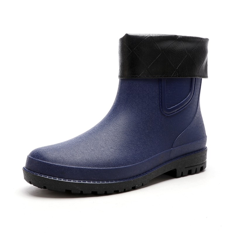 Rain boots men's mid-tube plus velvet non-slip water shoes kitchen delivery work fashion short tube warm rain boots rubber shoes men's overshoes