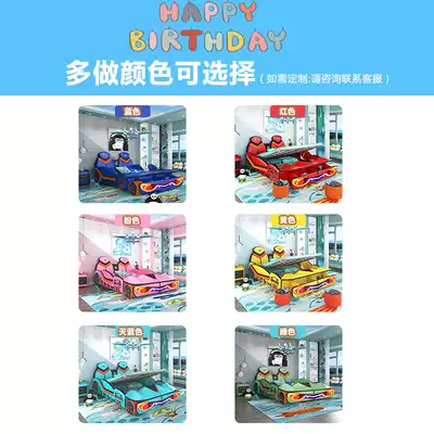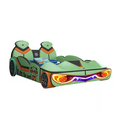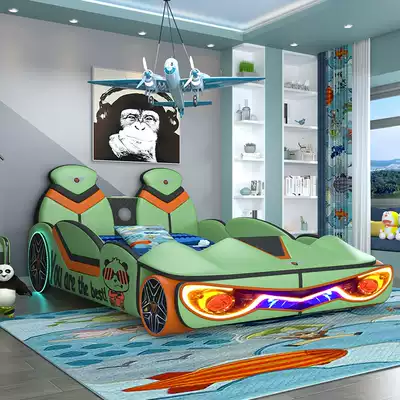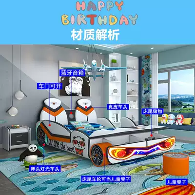 Children's bed Boy with guardrail single bed 1 5 meters cartoon solid wood white sports car combination car children's bed