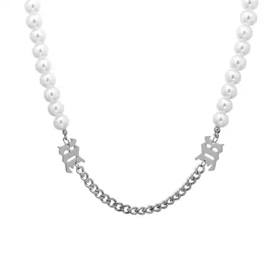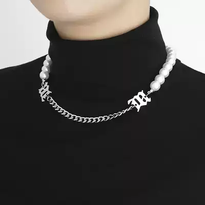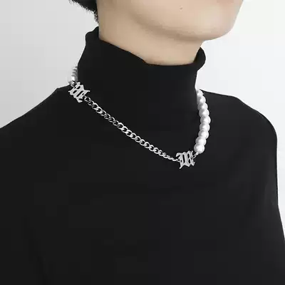KANSAI Deng Ziqi same M letter stitching pearl necklace men and women trendy hip-hop choker titanium steel clavicle chain