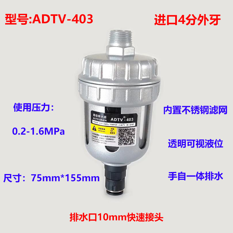 Mini ADTV-30 Zero Air Consumption Automatic Drainer Air Compressor Pipeline Filter Air Source End Drain Valve