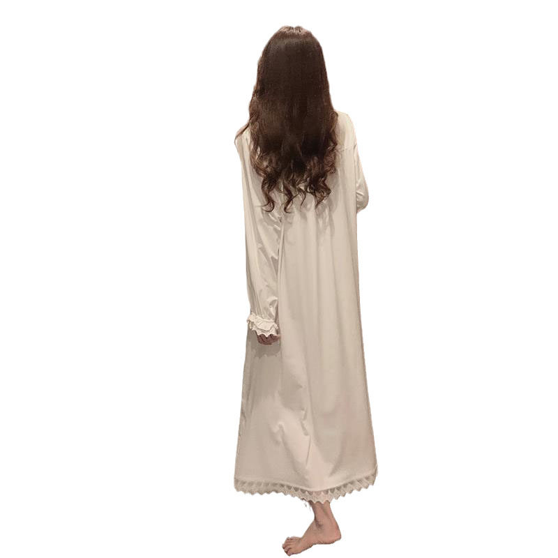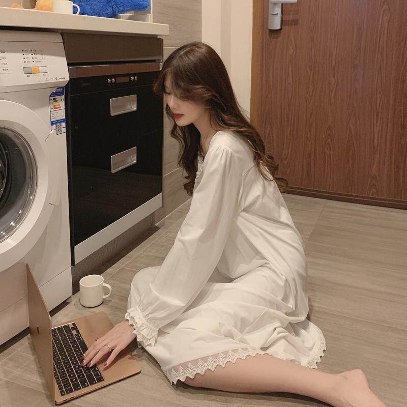 New Ins Sleeping Dress Pyjamas Woman Spring Autumn Season Winter 2020 Palace Day Department Sweet And Long Version White Long Sleeve Home Suit