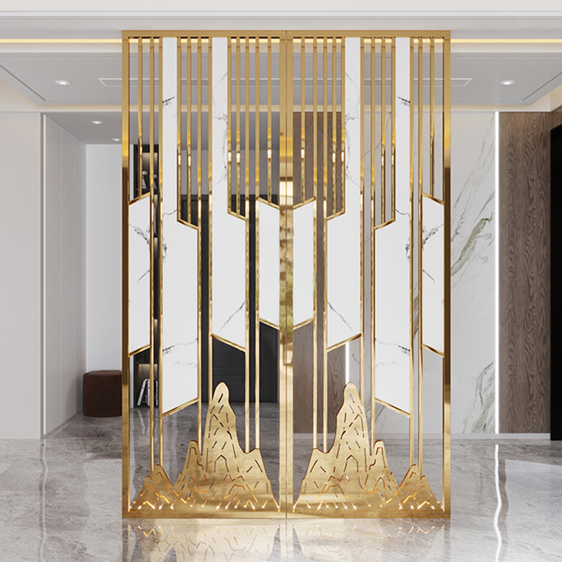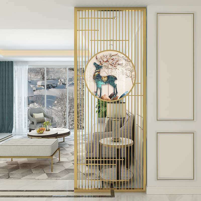 Simple light luxury American stainless steel screen partition home titanium lattice living room into the door to block the metal entryway