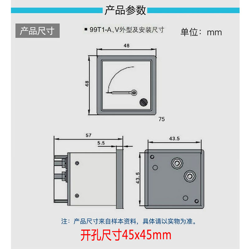 99T1-A V-type pointer AC current meter electric voltmeter 30 5 50 5 75 5100 5 straight through 30A