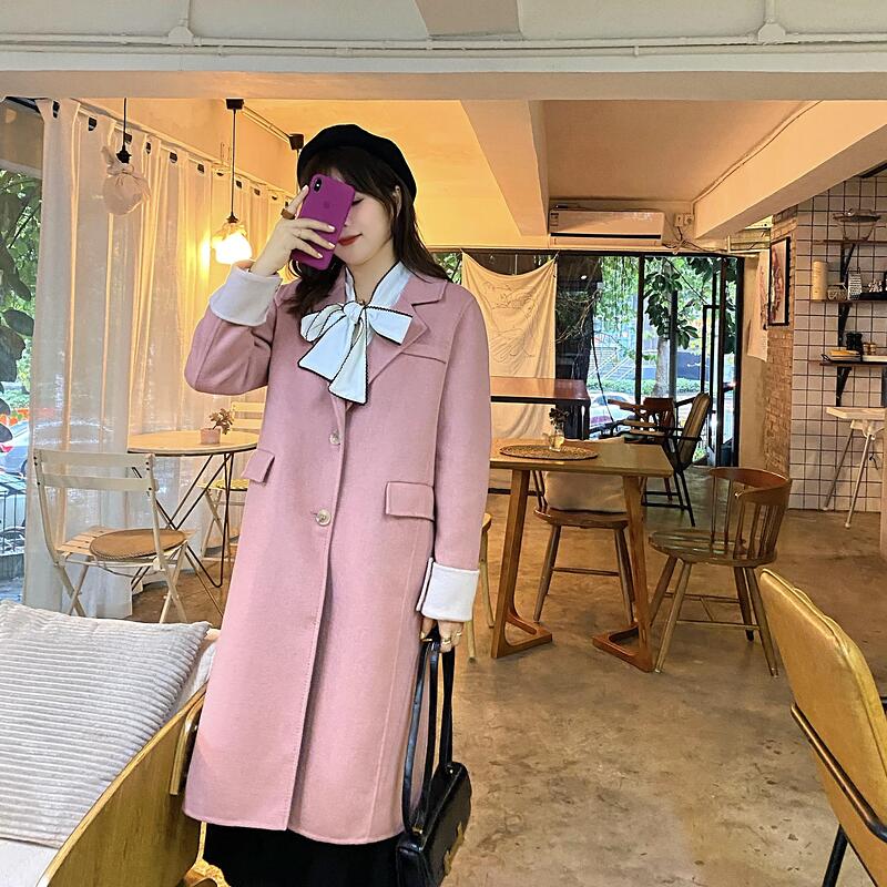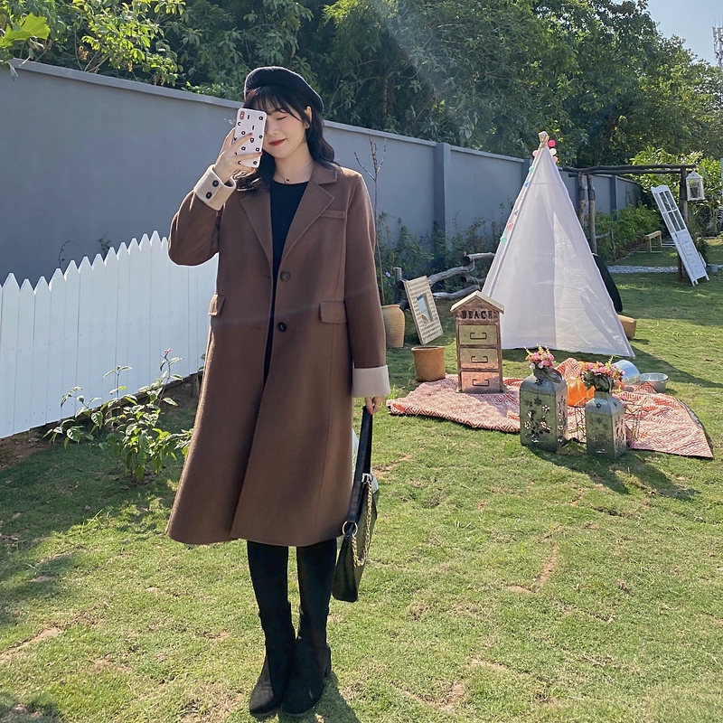 MM2021 Casual Han colour medium - long knee coffee double - sided coat