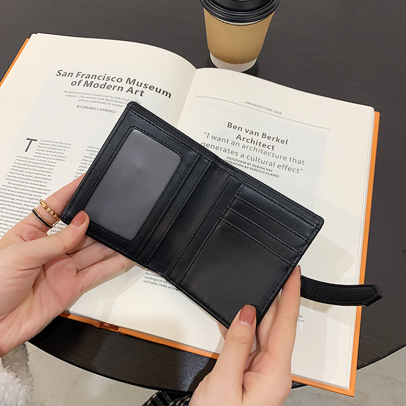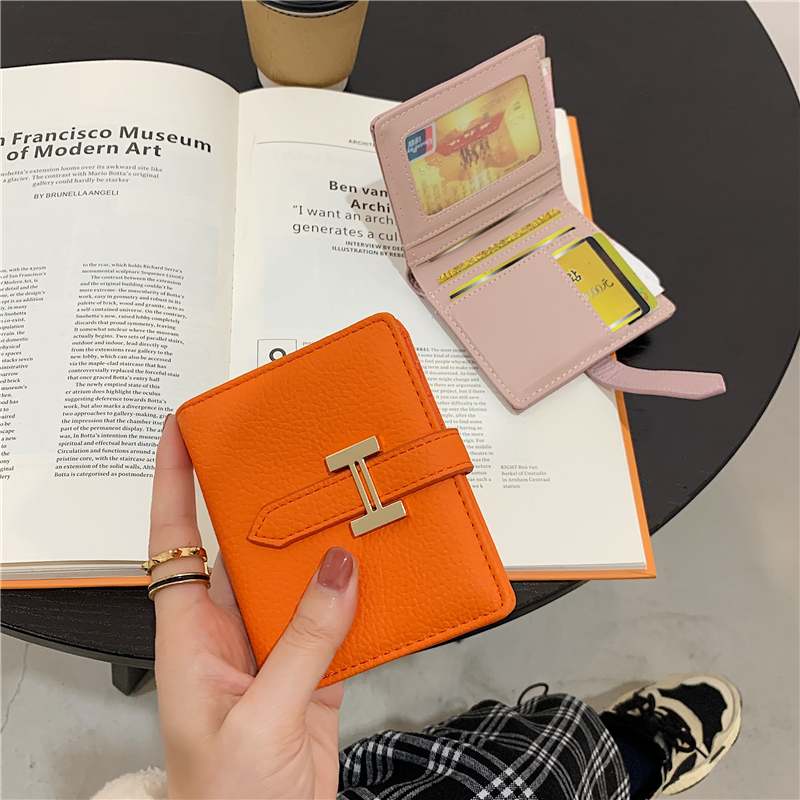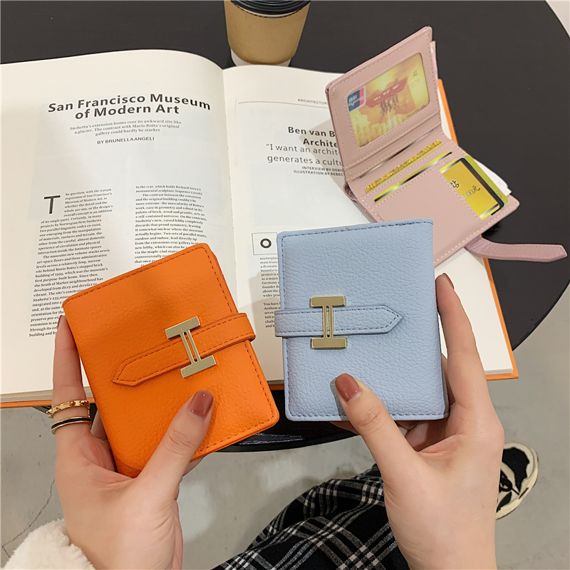 2021 new simple wallet women's short compact coin purse Korean version folding H drawstring thin wallet with multiple card slots