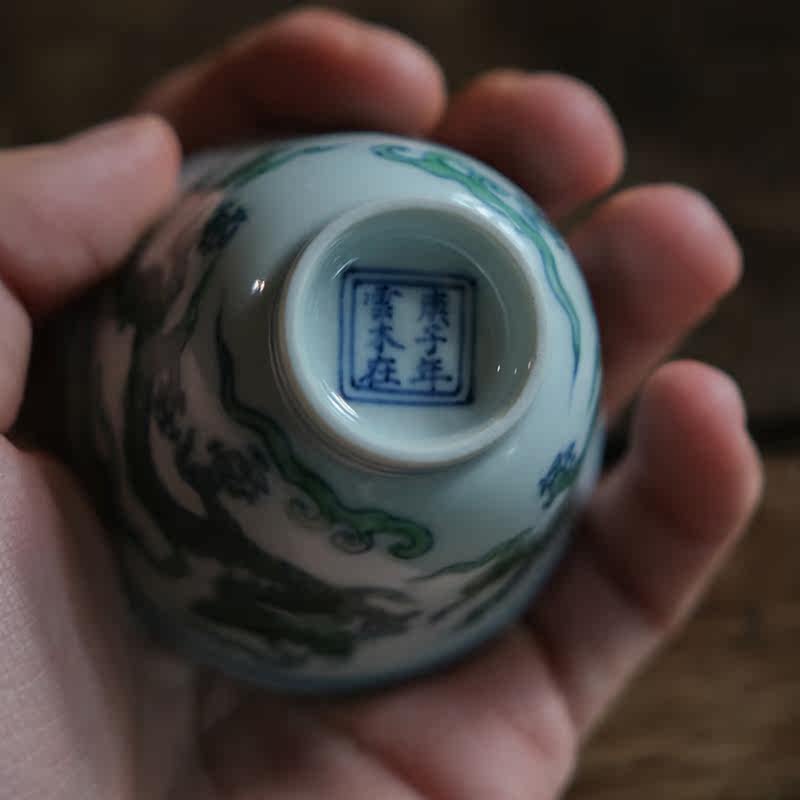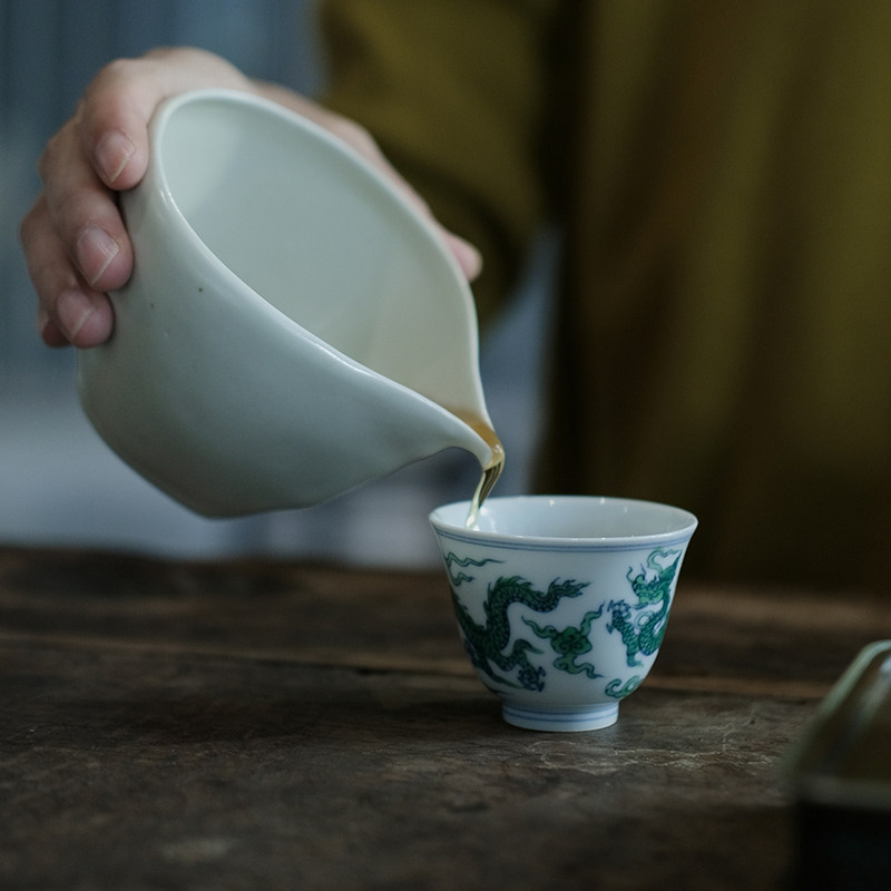 (idle and fast live) Yunmu in anthropized bucket color green dragon master's cup ceramic single cup tea tea set 60ml