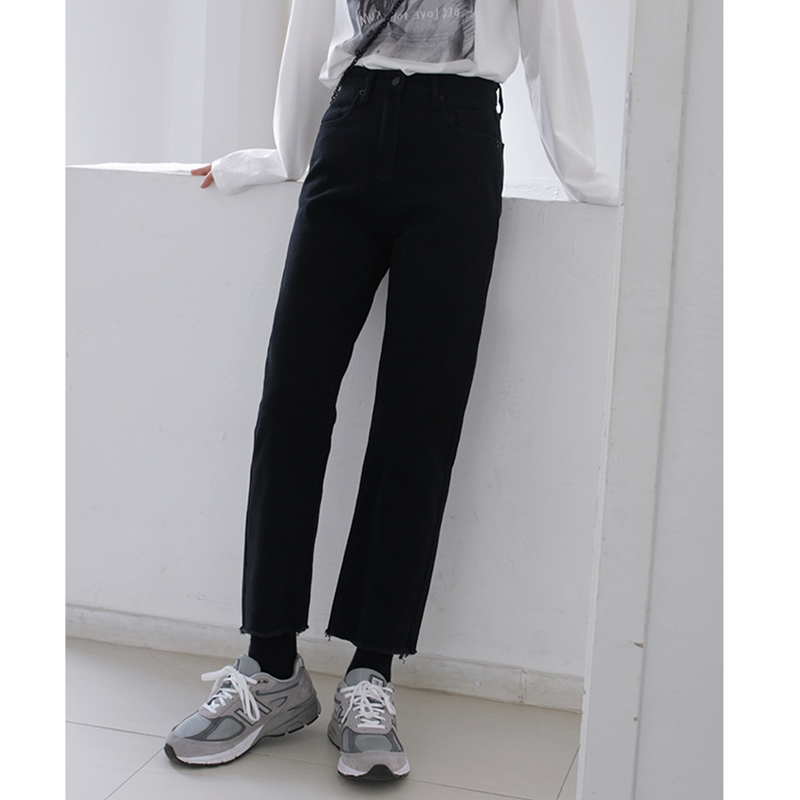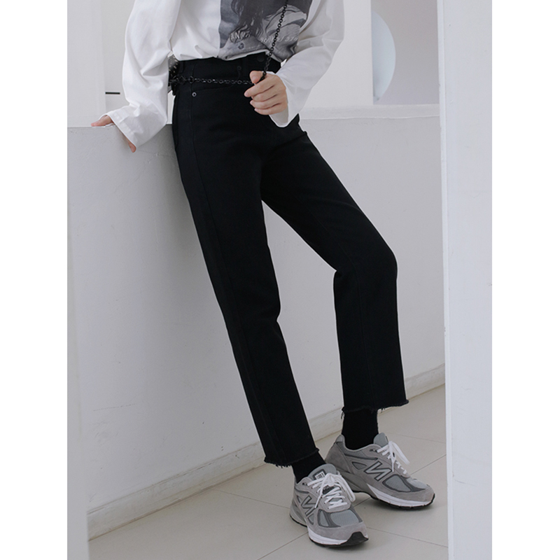Suitable for crotch thigh thick pants women's 2022 early autumn fat mm thin large size women's pear-shaped black straight jeans