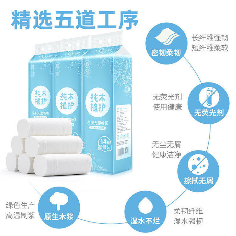 Plant protection sanitary paper towel high repurchase household toilet toilet paper large roll affordable pack 14 rolls coreless roll paper napkin toilet paper