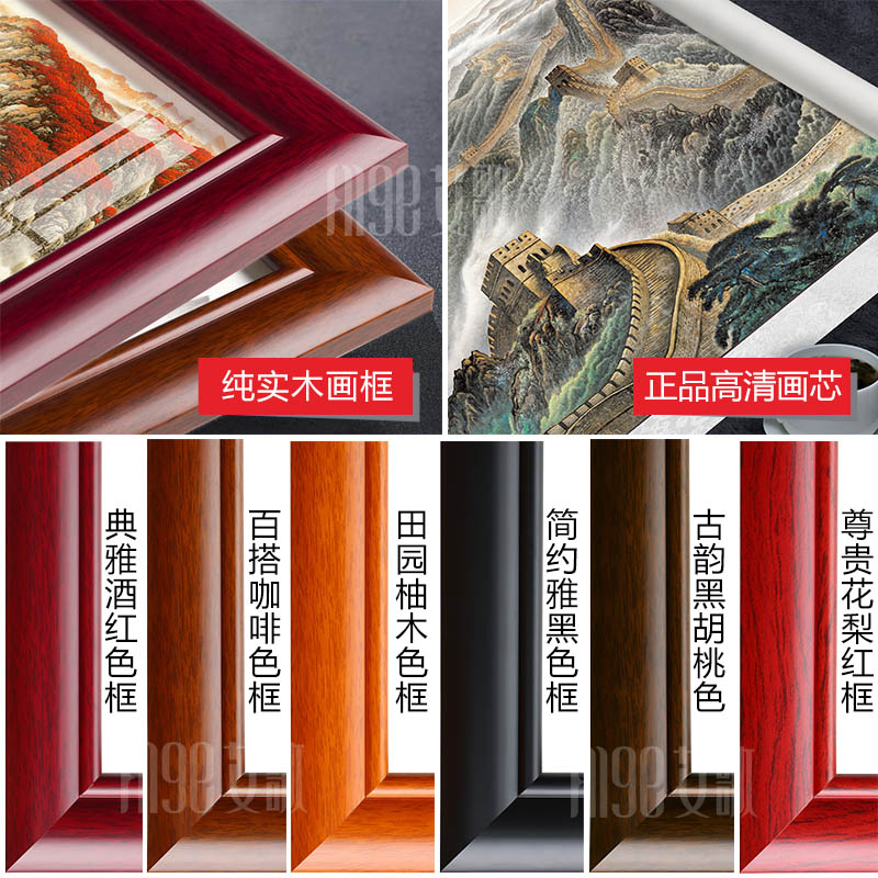 Coffee pure solid wood picture frame high-definition rice paper painting core traditional hand-mounted wine red pure solid wood picture frame high-definition rice paper painting core traditional hand-mounted