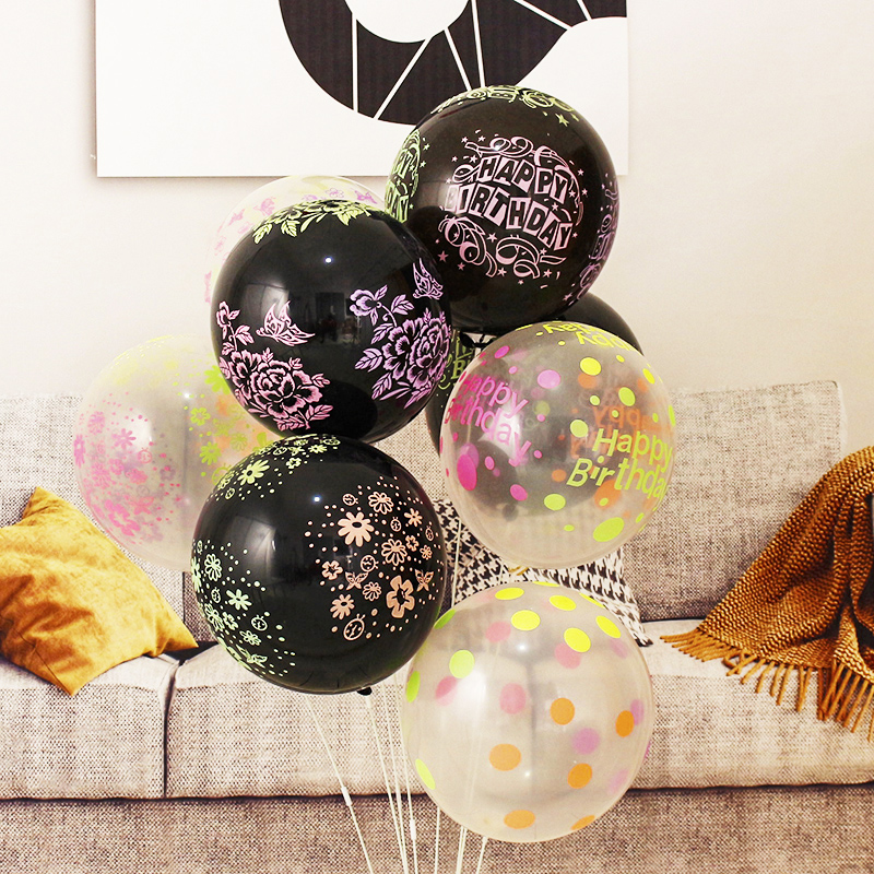 Birthday Party party Opening with balloon Spring Festival Decorative Black Transparent Fluorescent Print Event Arranged Steam Ball