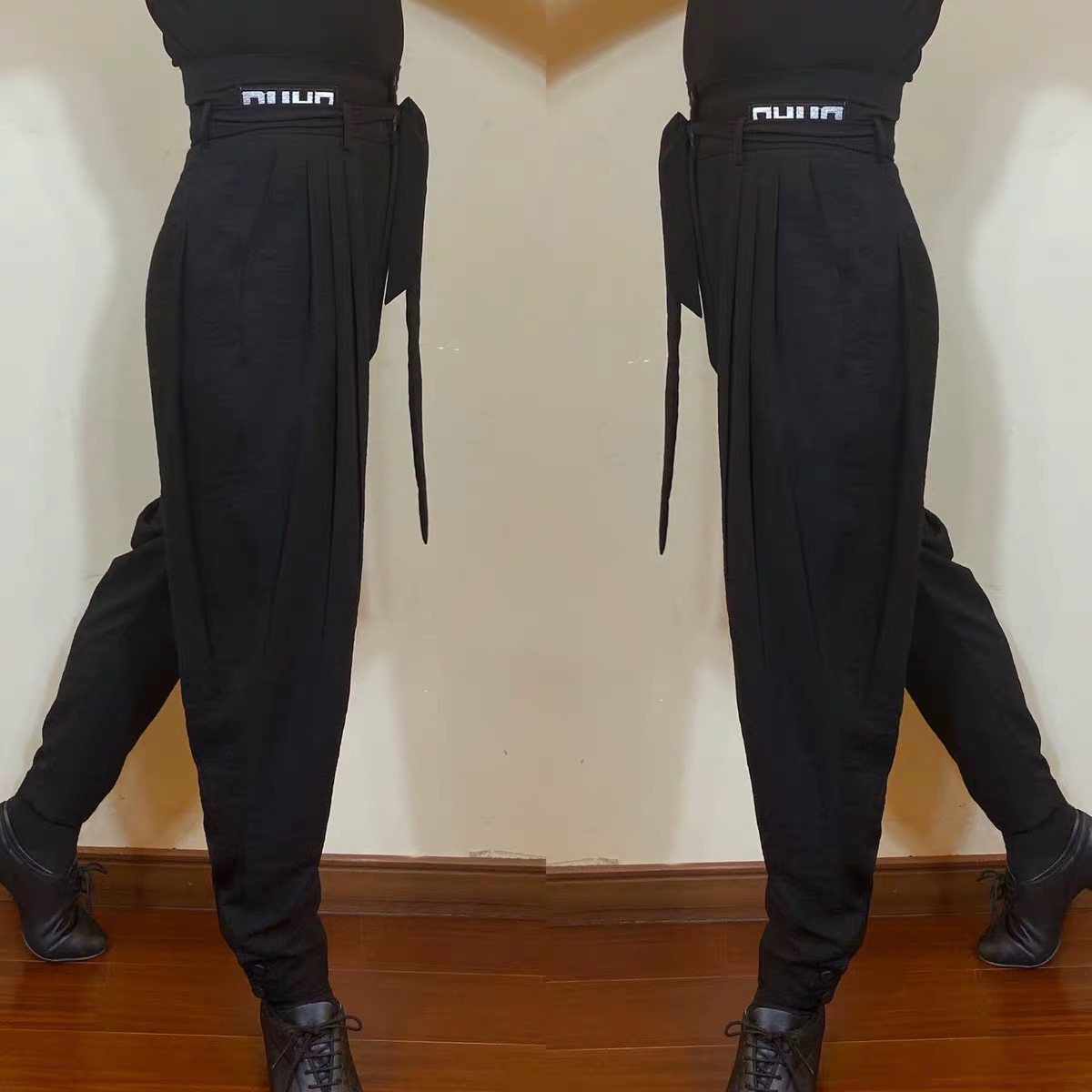 DUYQ2020 Men's High Waist Design Latin Dance Pants with Straps and Wrinkled Feet 029