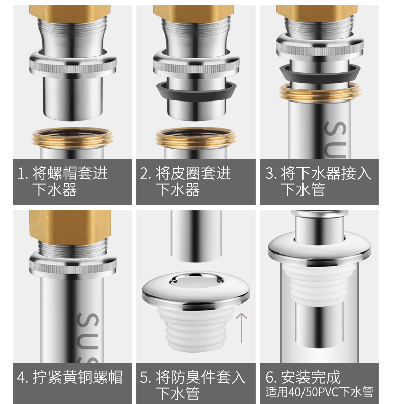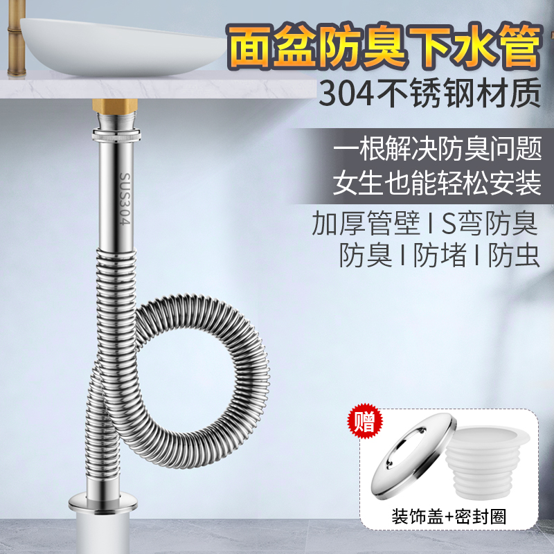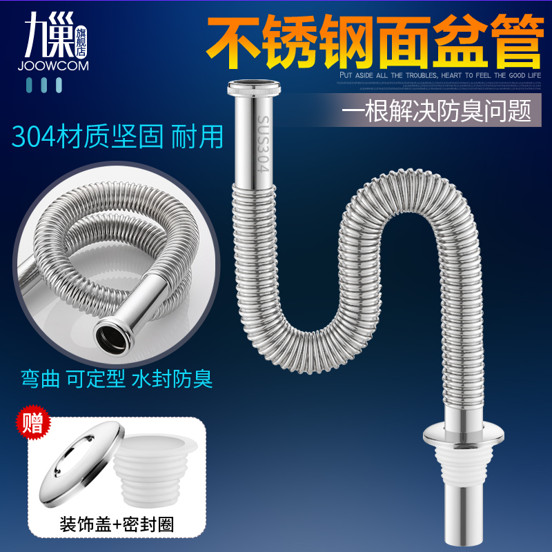 Stainless steel basin water pipe extends into wall anti-smelling wash basin basin water parts drainage pipe resistant high temperature