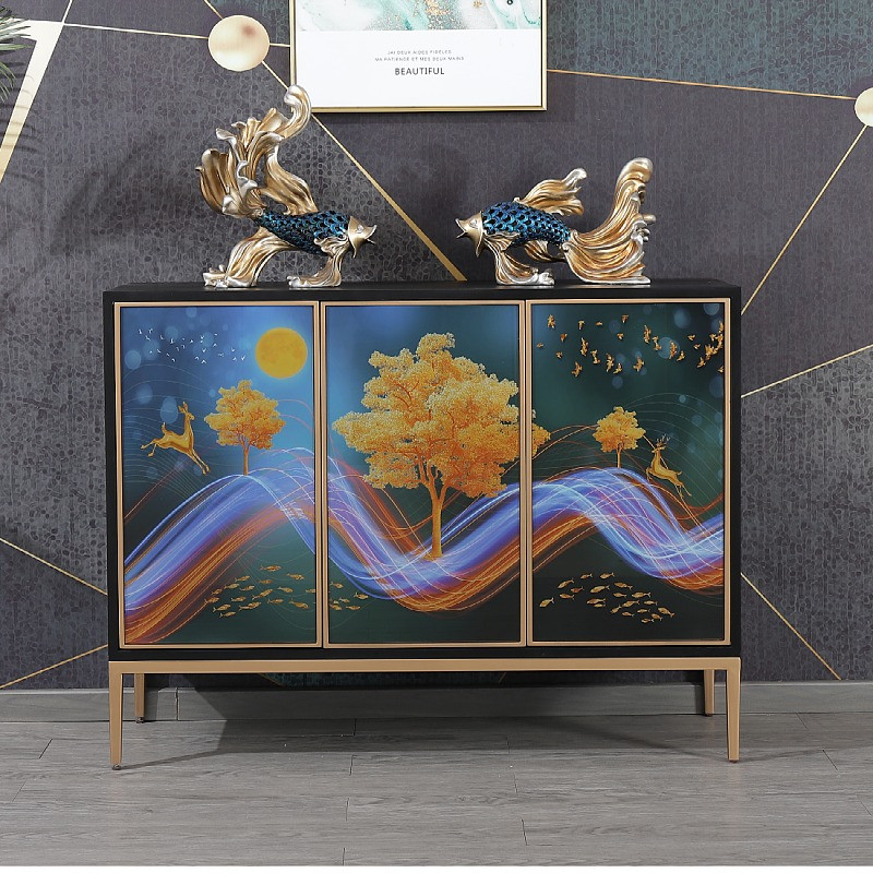 Light luxury solid wood decorative cabinet porch cabinet simple postmodern hallway partition mirror locker large capacity sideboard