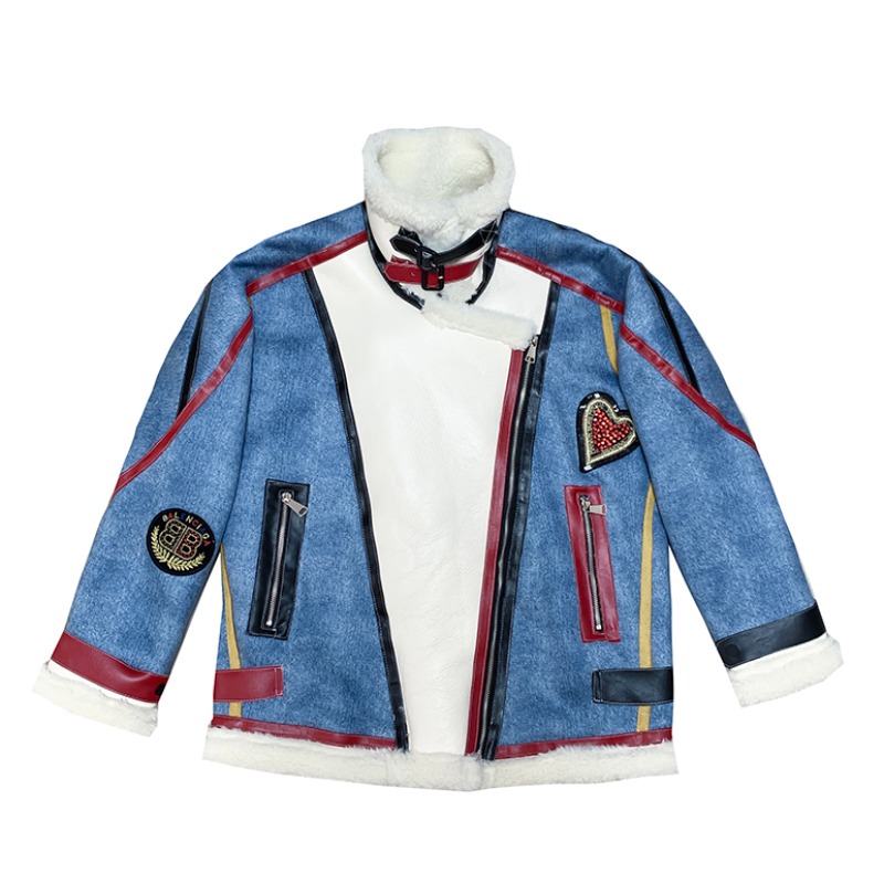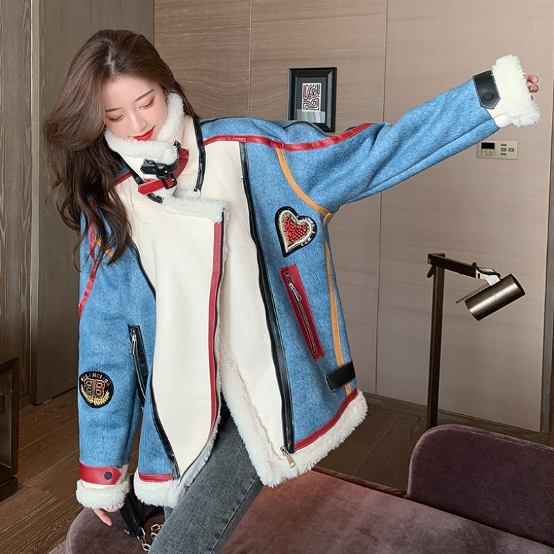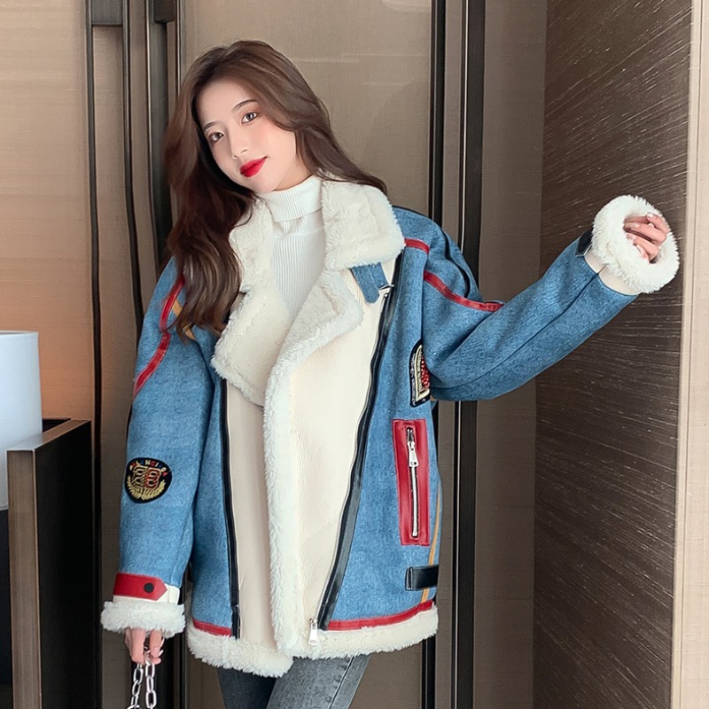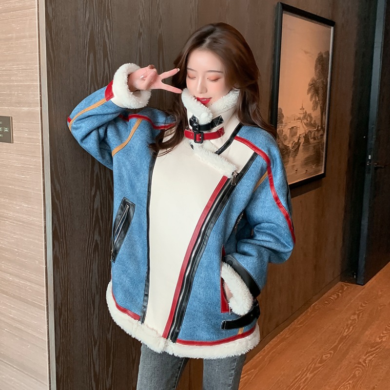 Fanxi Motorcycle Lamb Wool Coat Women's Winter Korean Version Loose Stitching Short Section Small Western Style Plus Velvet Thick Cotton Coat