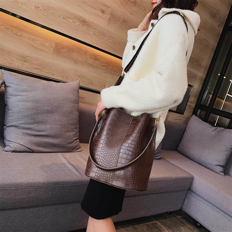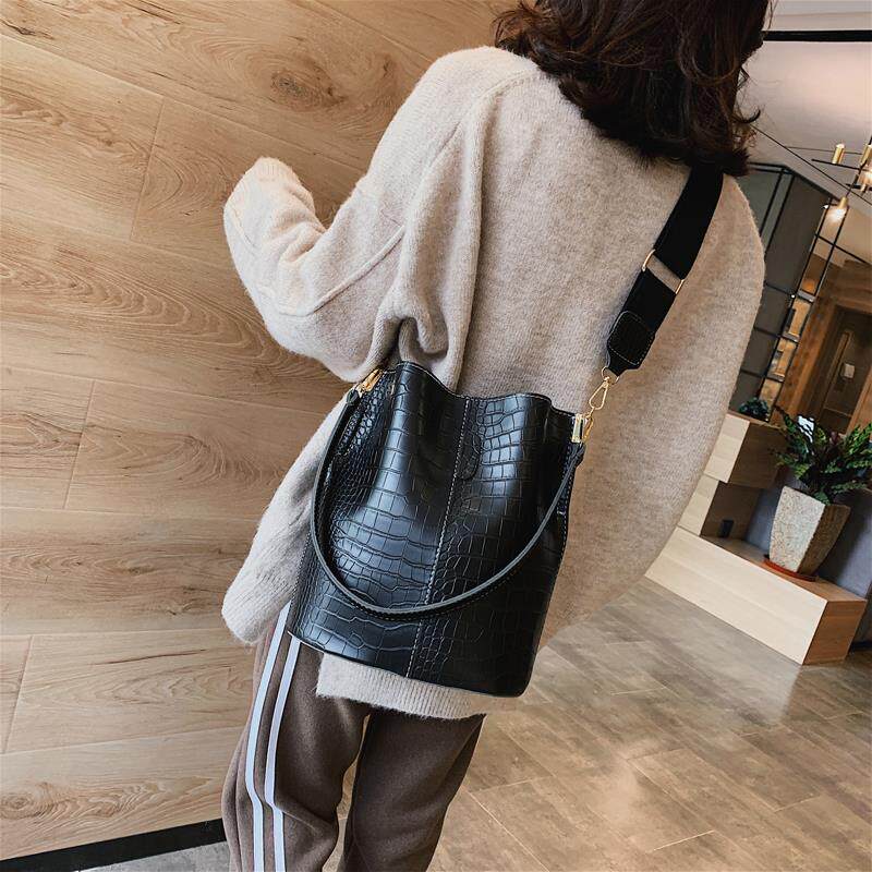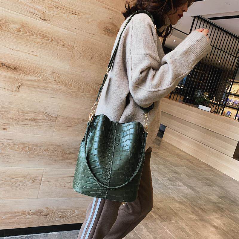 Tide brand 2022 new Korean version of the bag women's bucket bag women's messenger bag large-capacity all-match crocodile pattern single-shoulder women's bag