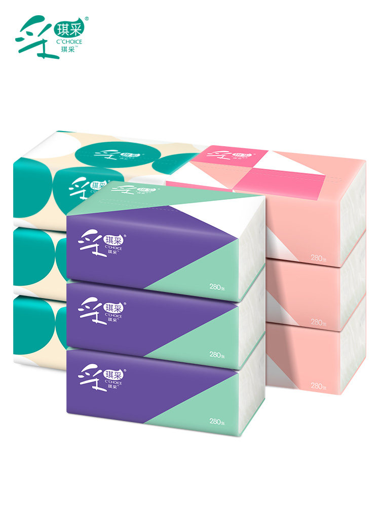 Caiqi adopts white pumping paper towel napkin 8 packs affordable toilet paper extra thick whole box family paper pumping