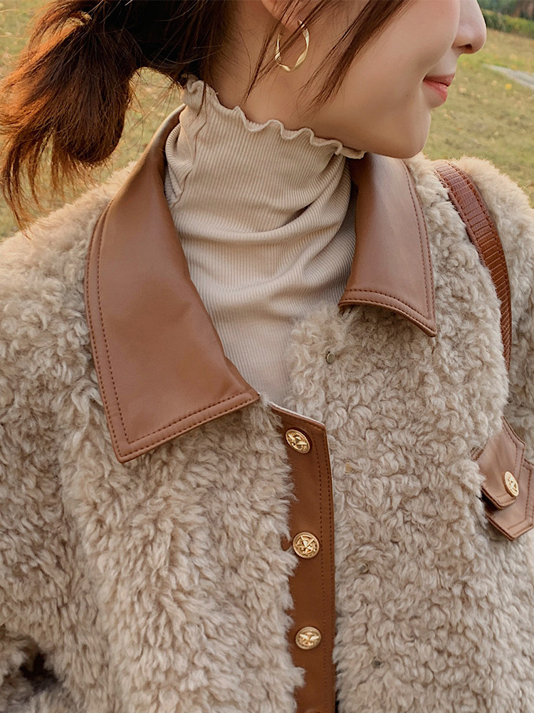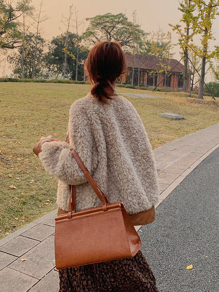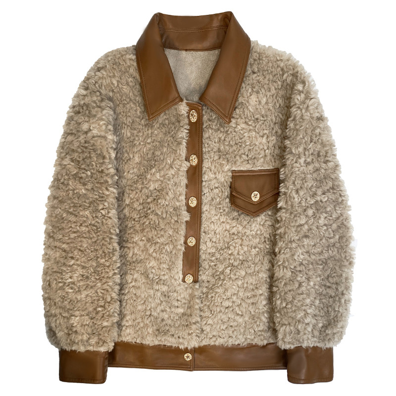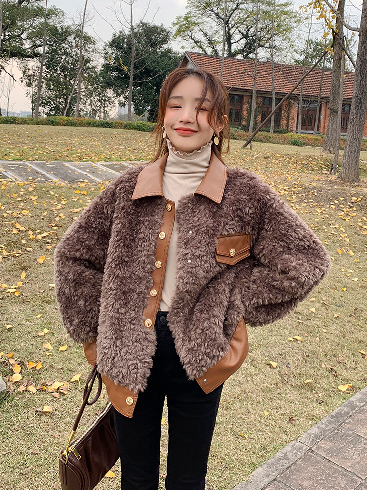 Wool pellet velvet short fur top women 2021 Winter wear new loose fashion Puu leather stitching sheep cut jacket