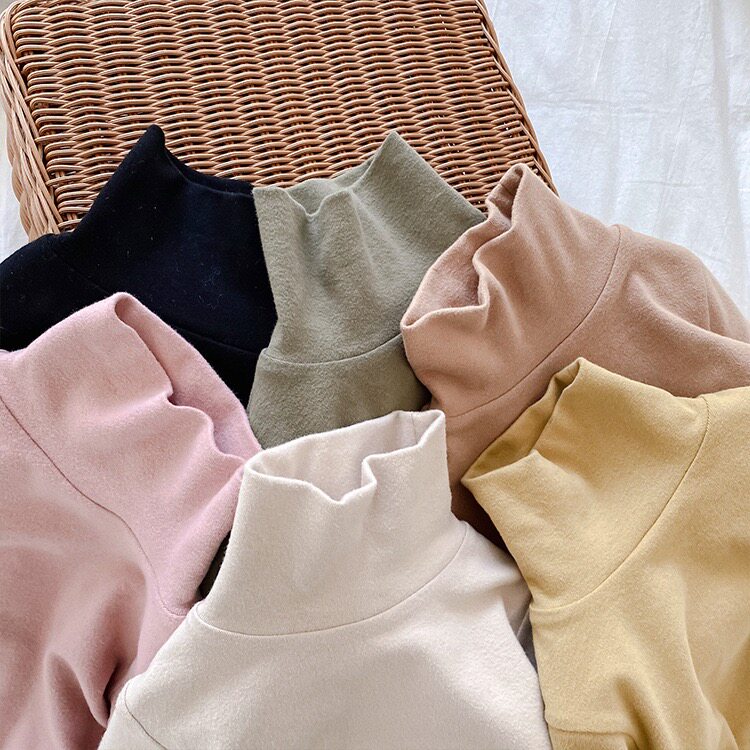 No 7 Tongcang Girls ' high elastic base shirt Baby winter Children's high collar with small and large children's long-sleeved T-shirt