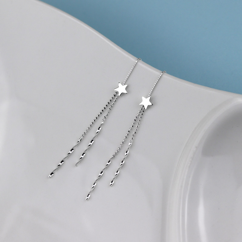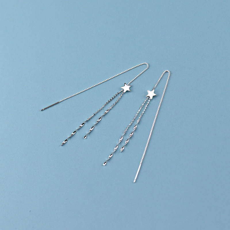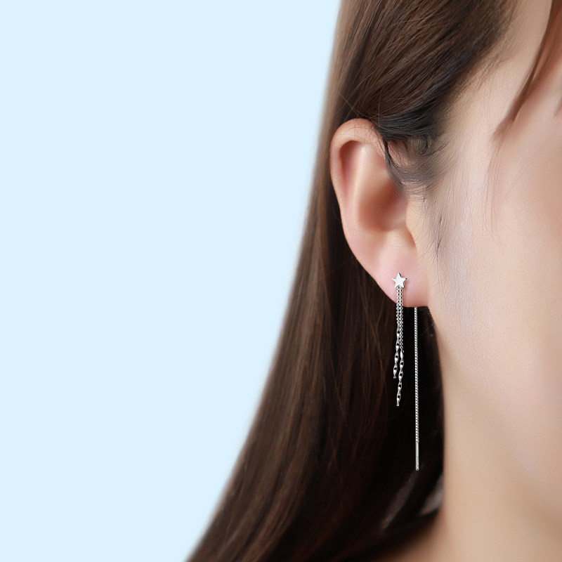 Through Body Pure Silver Long Version Stars Ear Necklace Female Earrings Korea Temperament Net Red Ear Pendant 2021 New wave