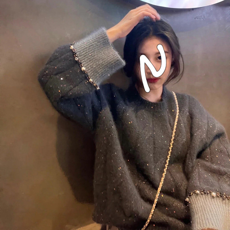 Retro sweater 2020 new female winter Korean version loose sleeve head Lazy Wind Fashion 100 Hitch Knitted Blouse