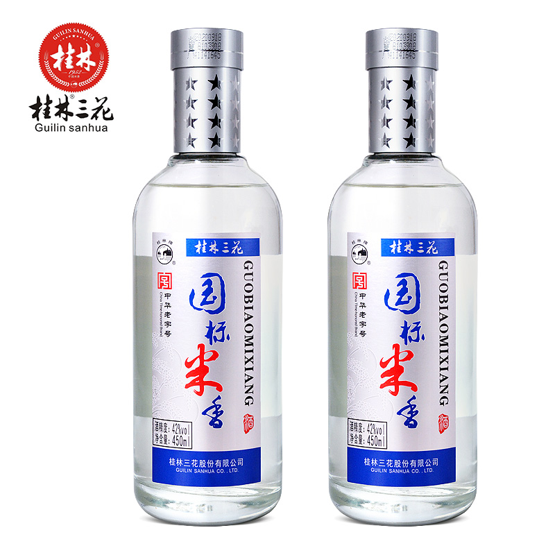 Guilin Triple Flower Wine 42 Degrees National Standard Rice Wine Water 450ml * 6 Bottled Kleu Whole Box Courtesy Kit of Guangxi Special