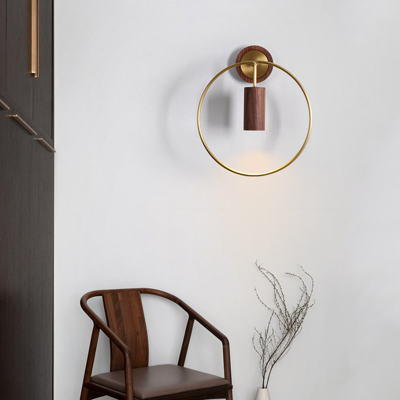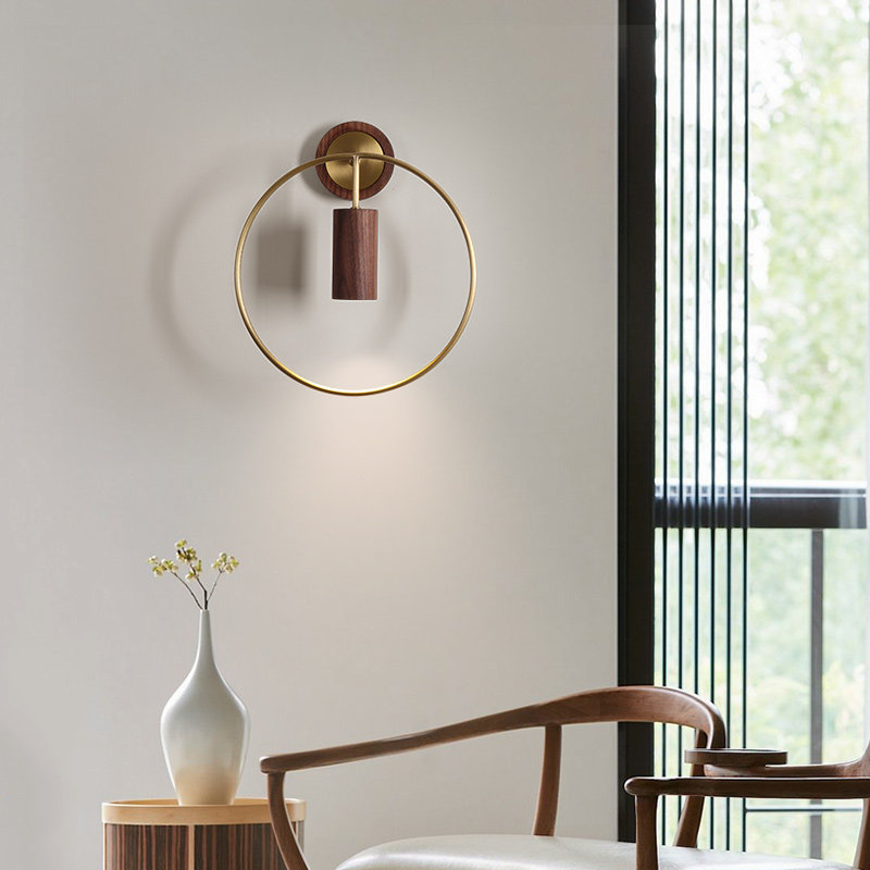 Wall lamp bedroom bedside lamp new Chinese style walnut all copper light luxury living room background wall decoration study tea room lamps