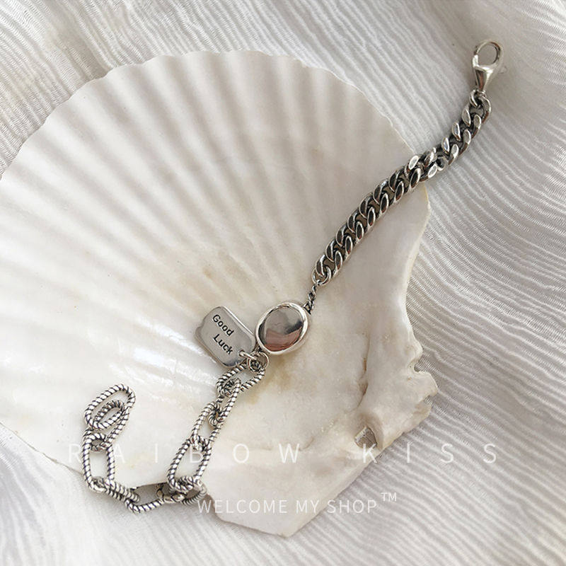 Ins independent design irregular European and American bracelet 925 sterling silver square brand luck bracelet female Korean version design Thai silver Jane