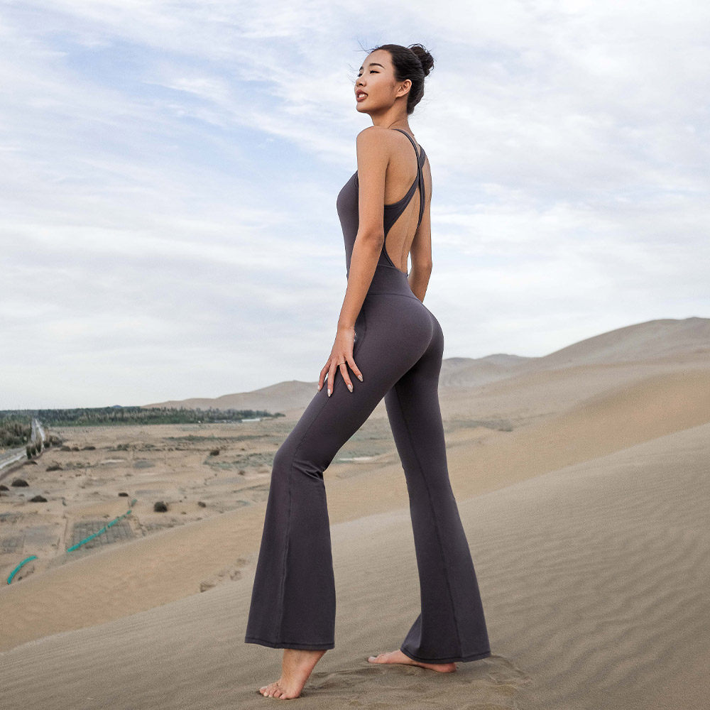 La Nikar beauty back one-piece yoga suit Women slim one-piece one-piece flared trousers stitching sports suit