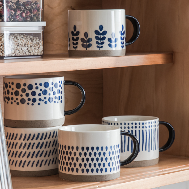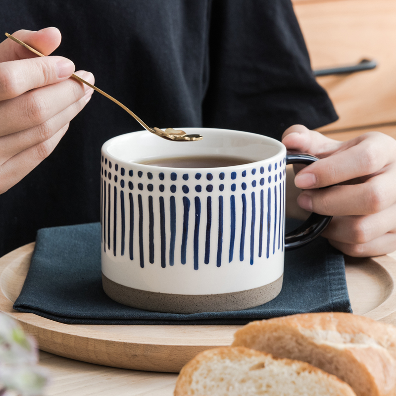 Japanese-style large-capacity breakfast cup hand-painted rough pottery mug household ceramic cup coffee cup milk oatmeal cup water cup