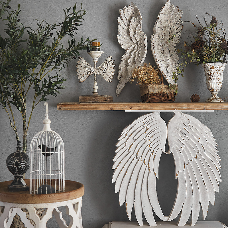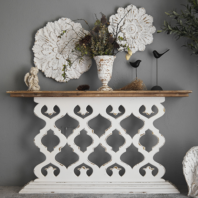 American-style entrance porch table narrow retro old porch shelf hollow living room Nordic wall two-story shelf