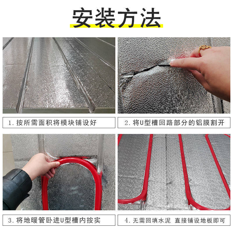 Backfill-free dry-wiping aluminum foil floor heating special module thin fire-proof thermal insulation extruded aluminum plate