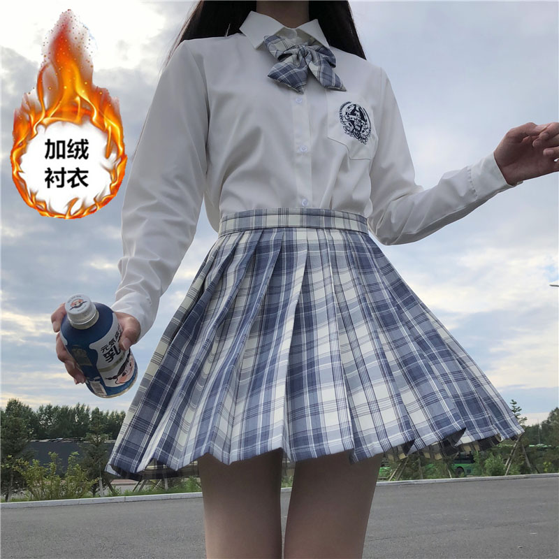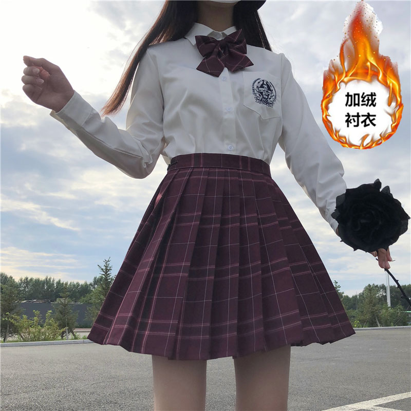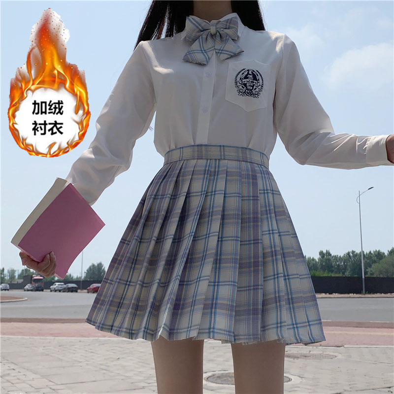 Autumn and winter new jk uniform full set plus velvet genuine student class uniform dk college style shirt long-sleeved plaid skirt suit female