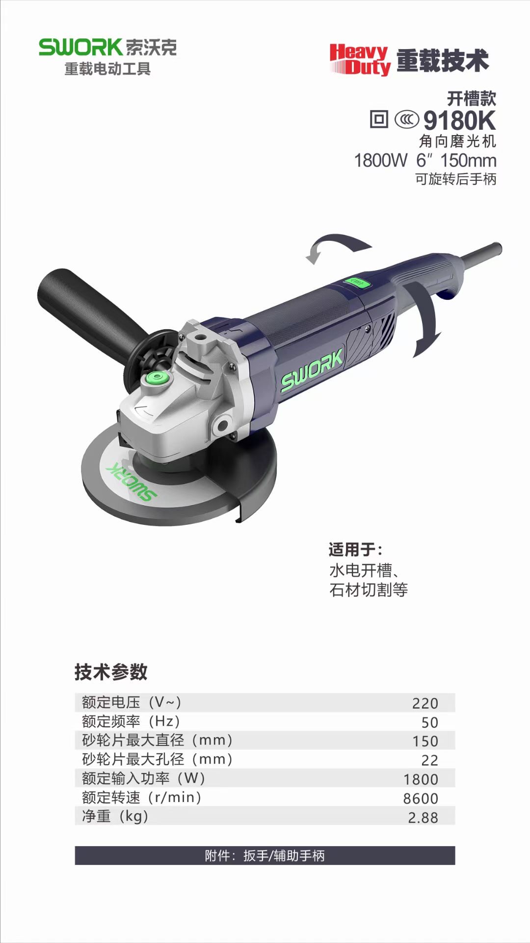 SWORK Sowerk 9180K 9180 9185 corner mill 1800W slotted stone cut 150 Type angle mill