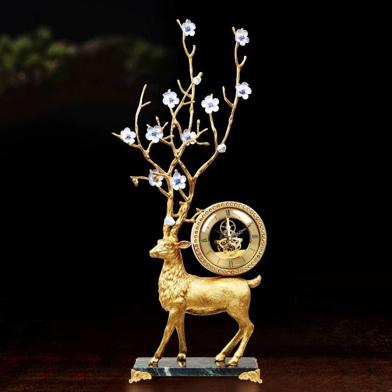 Yellow pure bronze Mei Flower deer seat Zhong Xuanguan light and luxurious living room wine cabinet swing piece Villa Family Residence Decoration Pendulum desktop and watch