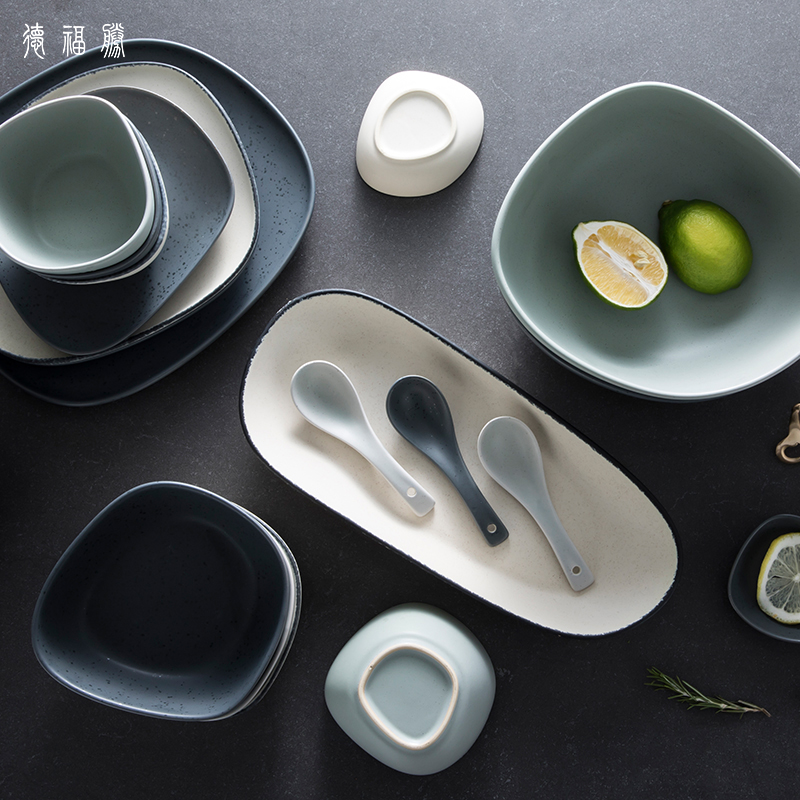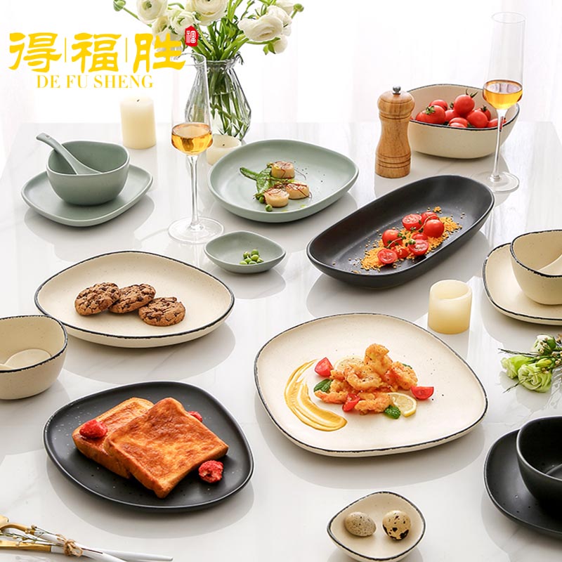Nordic Mate Simple High-end Luxury Light Luxury Dish Set Household Color Glazed Tableware Bowl Combination Gift