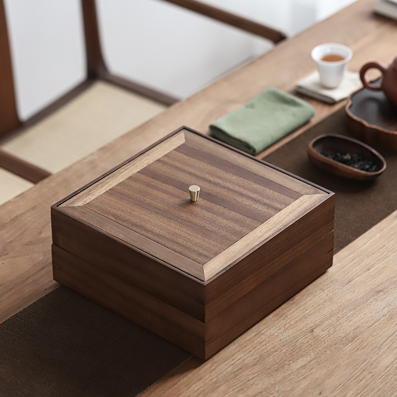 Lofan Walnut Solid Mu Pu-a-Tea Cake Collection Box White Tea Storage Tea Tea Can Multi-layer Kung Fu Tea Cell Accessories
