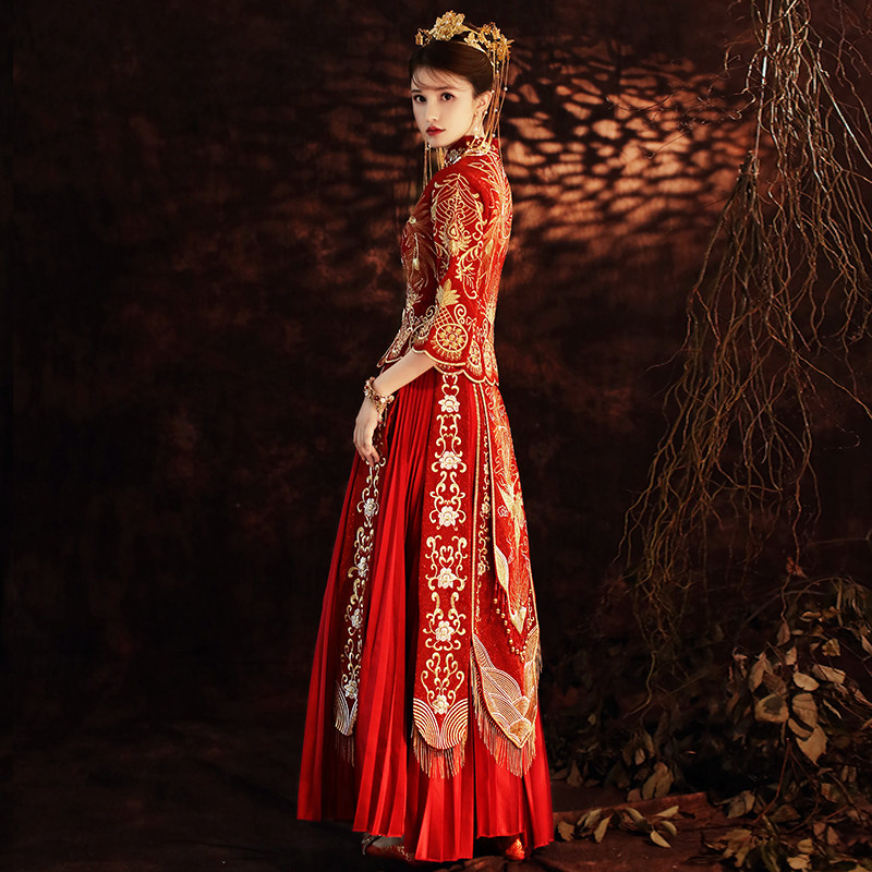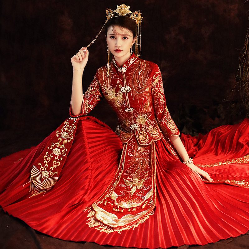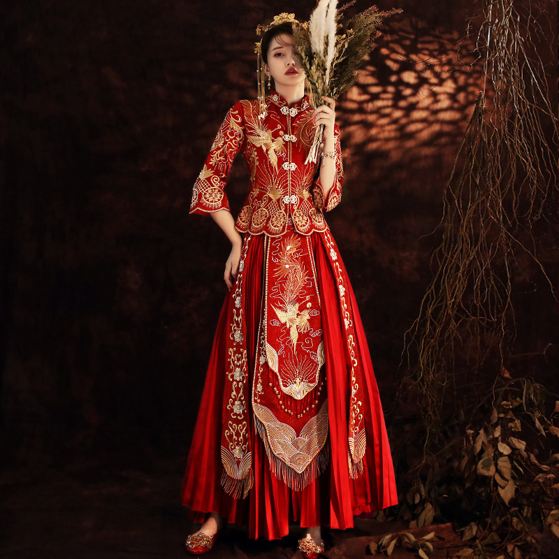 Xiuhe clothing bride 2022 new Chinese wedding dress wedding dress dragon and phoenix hanging female toast dress slimming wedding dress autumn