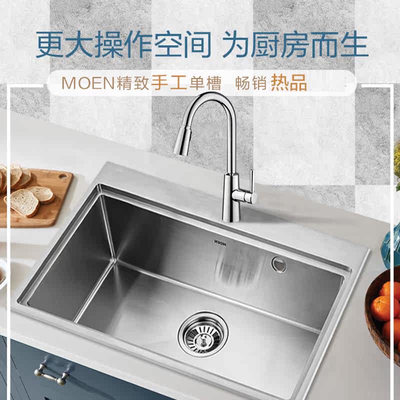 Moen Stainless steel sink set single slot strainer siu kitchen pull-out faucet chrome plated