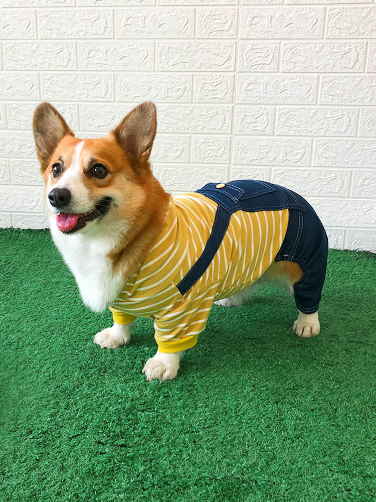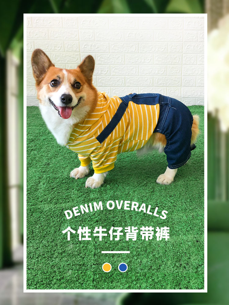 Pet corgi four-legged winter dog clothes hooded denim overalls jumpsuit cute net red medium-sized dog