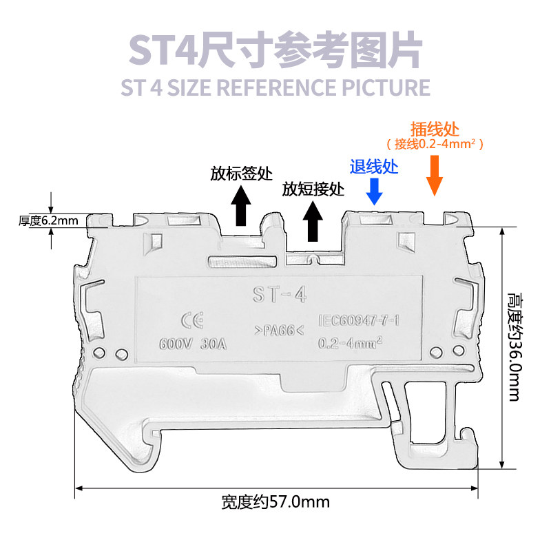 ST4 spring terminal block discharge flame retardant copper sheet 4mm straight plug - free screw guide rail fast terminal