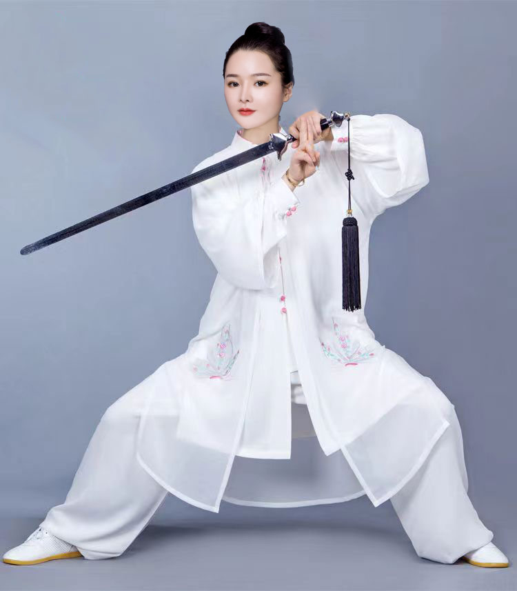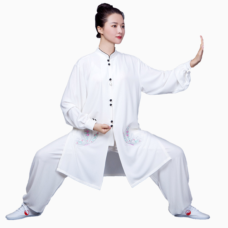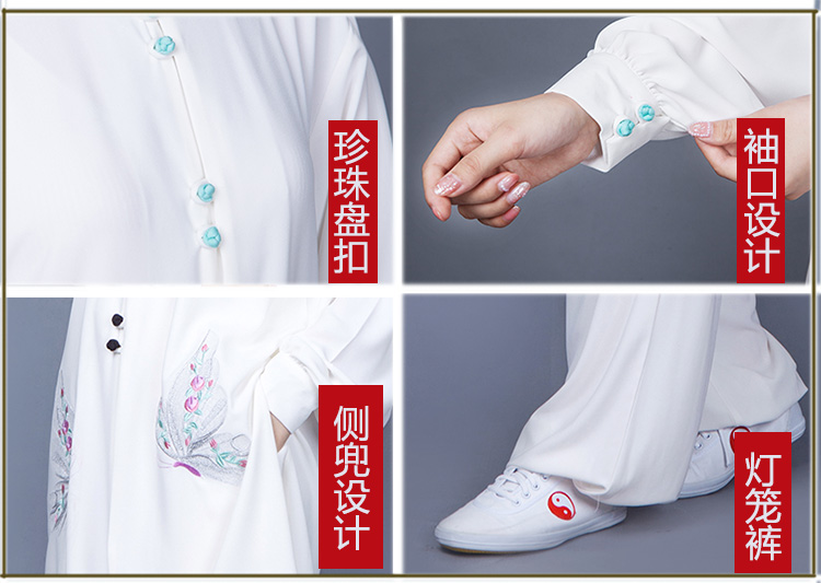 Upscale Tai Chi uniforms women's spring and summer new competition Performance Conserve Taijiquan Martial Arts's Colorful Butterfly Embroidered Dress in Long Edition