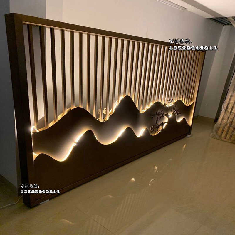 Stainless steel rockery screen bronze landscape art background wall rose gold titanium grille through flower metal light luxury