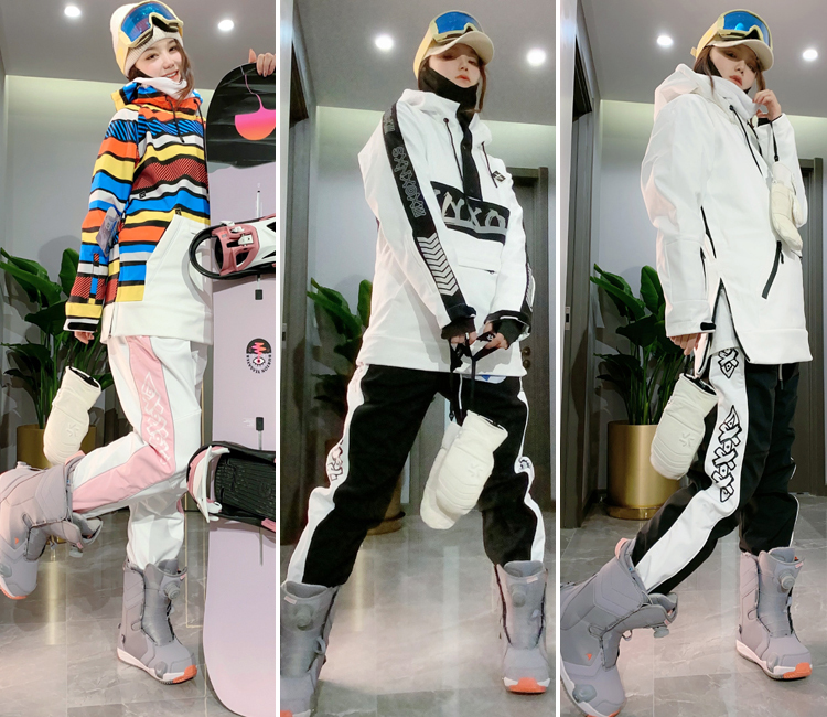 sXnXoXw plus velvet thickened waterproof men and women couples snowboarding suit women's suit windproof not touch snow loose fan