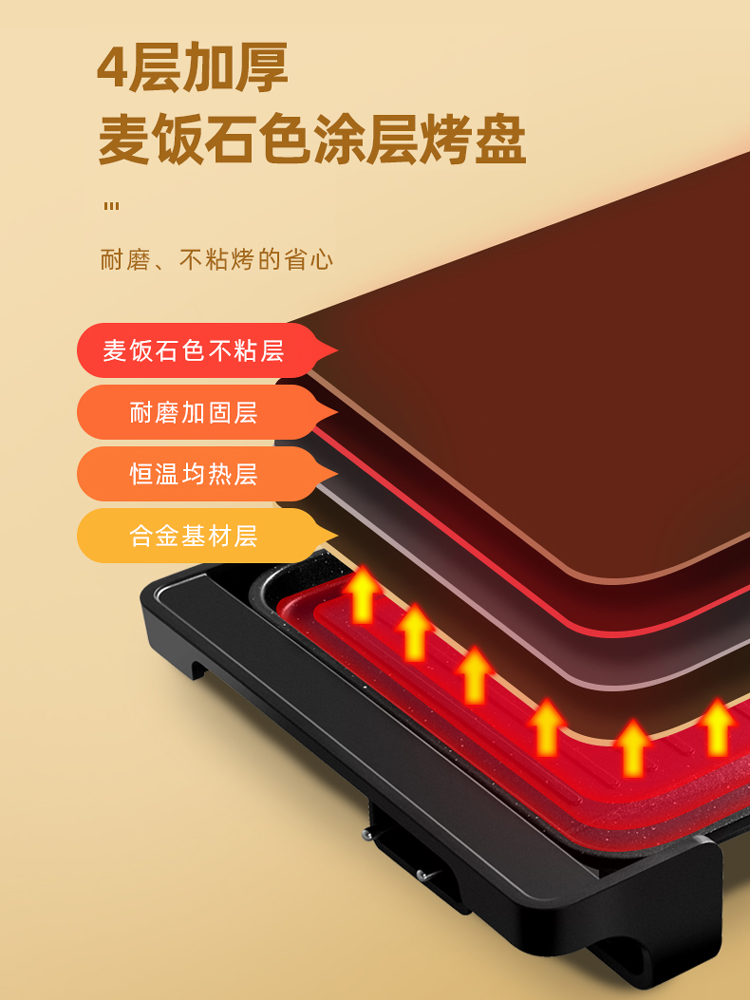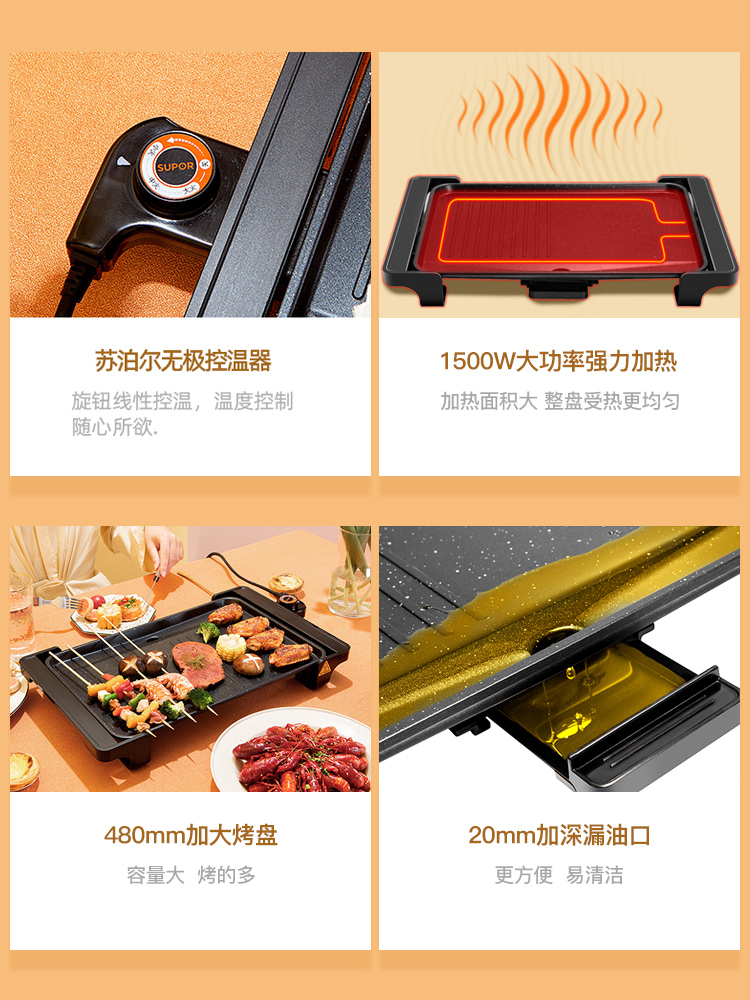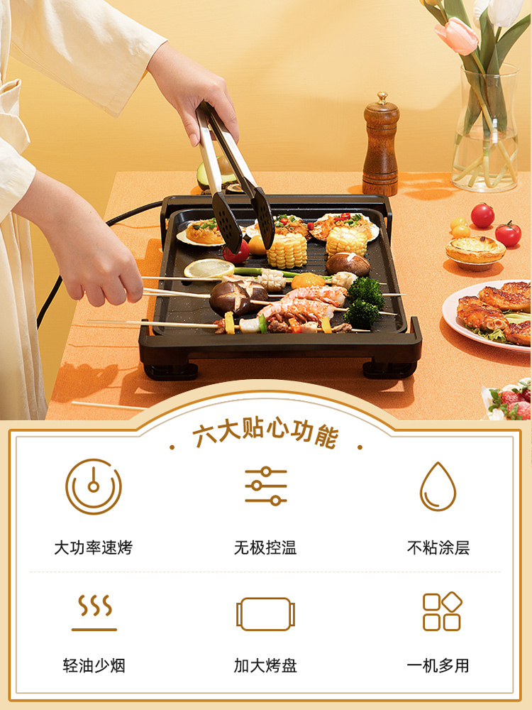 Supor barbecue plate electric barbecue plate electric barbecue stove Household indoor smoke-free non-stick multi-function skewer barbecue pot
