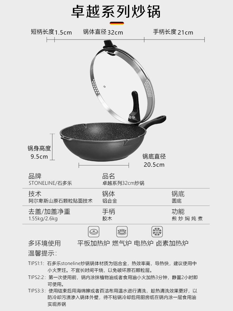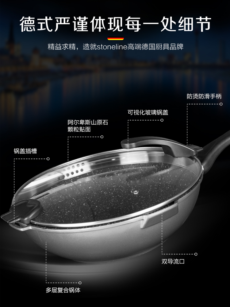 Germany stoneline stone dole imported non-stick pan wok home wok cooking pan induction cooker gas stove dedicated