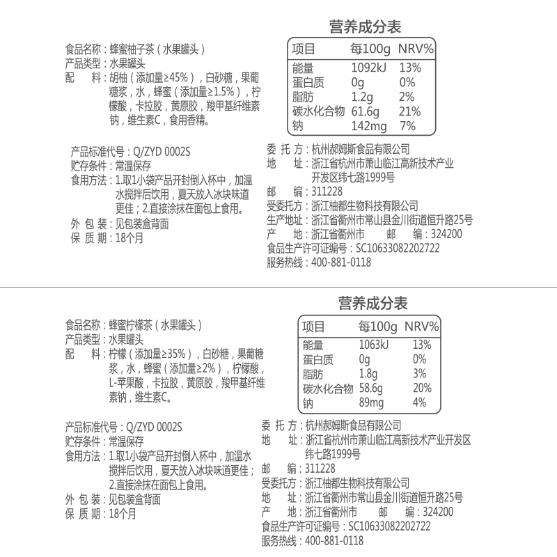(Separate sachet) - Honey grapefruit tea 420g (real honey, grapefruit pulp) (independent sachet) - Honey lemon tea 420g (real honey, selected good lemon) Honey lemon tea 420g + honey grapefruit tea 420g