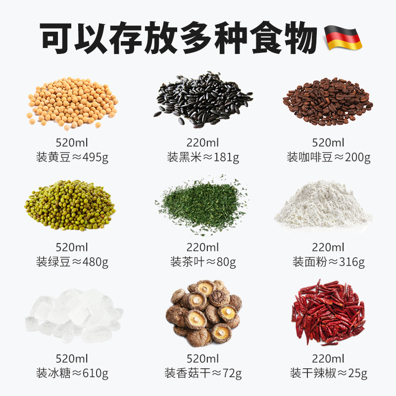 German food grade sealed jars 5 grain cereal storage jars for home transparent with lid tea dry goods small containing box